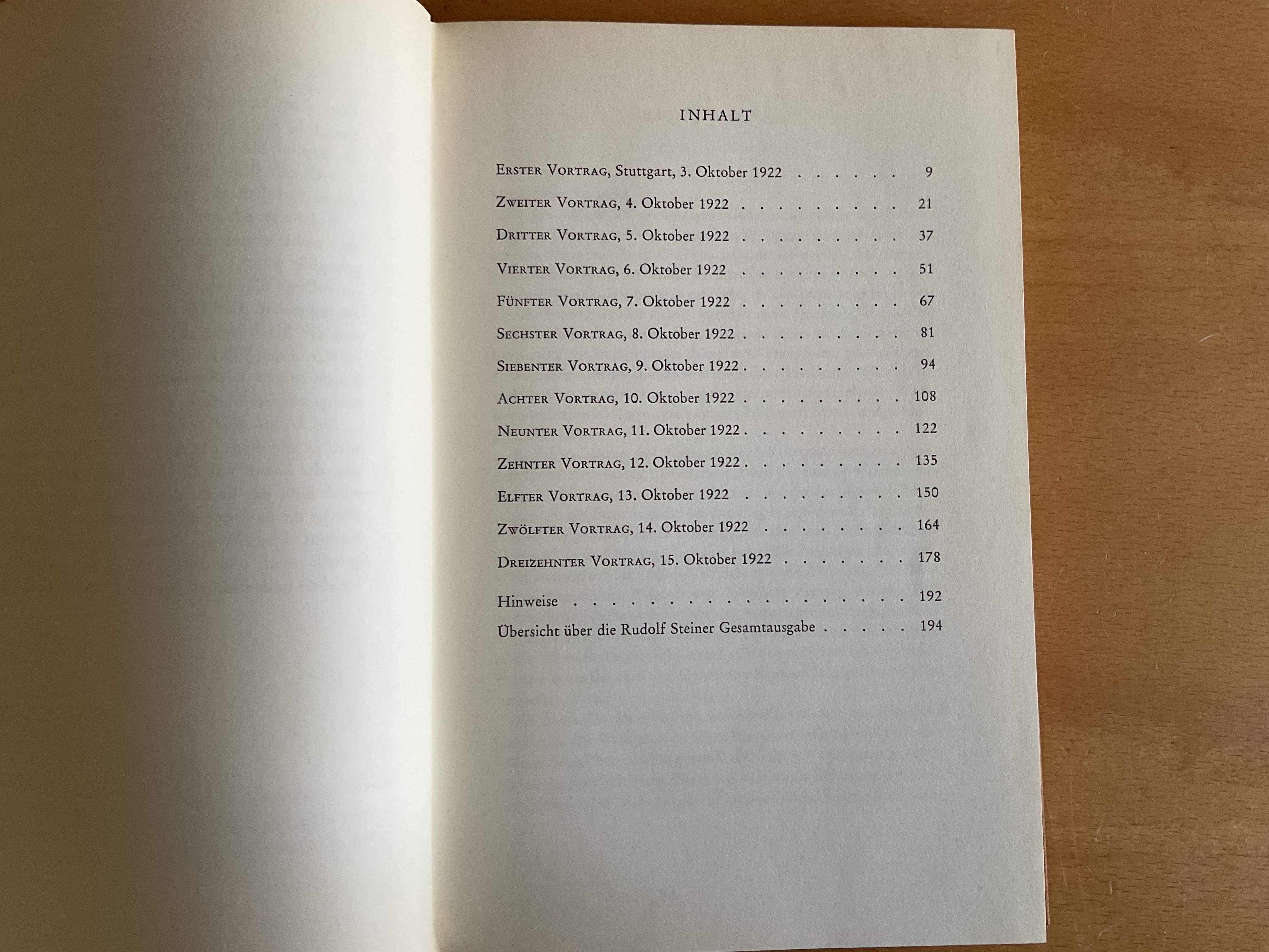 13 Vorträge, gehalten in Stuttgart vom 3. bis 15 Oktober 1922.