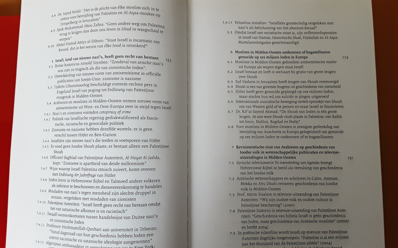 Meer dan dertig jaar later is er niet veel veranderd. Op 26 oktober 2005 zei Mahmoud Ahmadinejad, de president van Iran, namens alle ayatollahs: 'De staat Israël moet niet alleen worden vernietigd, maar zal ook van de kaart worden geveegd!' Sindsdien heeft hij dit talrijke keren herhaald. Waarom zweeg de hele Arabische wereld in het Midden-Oosten oorverdovend over de toespraken van Ahmadinejad? Omdat hij keurig de heersende opvatting vertolkte van islamitische wetenschappers, politici en geestelijke leiders in het Midden-Oosten, voor wie Israël géén bestaansrecht heeft en daarom uiteindelijk moet worden vernietigd. Het is een uiterst naïeve misvatting van Europese en Amerikaanse politici te denken dat alleen terreurgroepen als Hezbollah en Hamas dit doel voor ogen staat. Waarom is de overtuiging dat Israël uiteindelijk géén bestaansrecht heeft en daarom van de kaart geveegd moet worden onder moslims (wetenschappers, hoogleraren, leraren, politici, imams, juristen, journalisten, columnisten, cartoonisten en makers van radio- en televisieprogramma's) zó wijdverspreid in het hele Midden-Oosten?