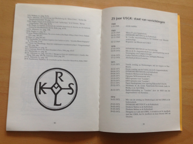 OverzichtUitgegeven ter gelegenheid van het 25-jarig bestaan van het USGK (Utrechts Studenten Gregoriaans Koor) 1968-1993.