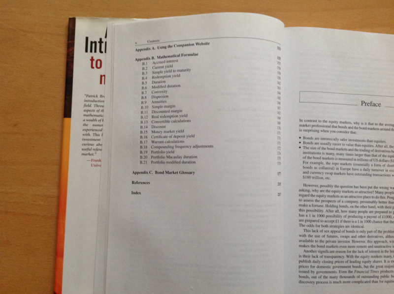 OverzichtPatrick Brown's book gives an introduction to the bond markets to readers who have an interest in understanding what they are, how they work, and how they can be used, but do not want to be intimidated by mathematical formulae. This is achieved by relegating most of the mathematical formulae to an appendix and supplementing the book with an interactive website.