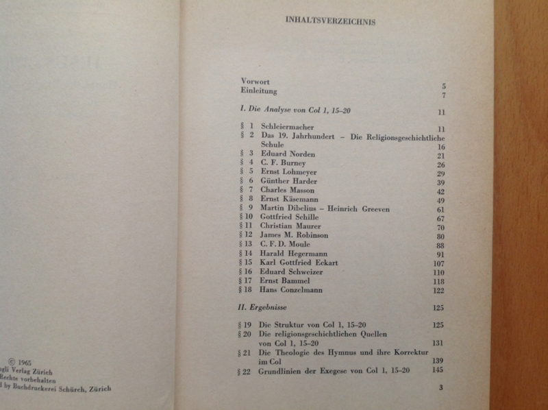 Der Christushymnus Colosser 1, 15-20 in der theologischen Forschung der letzten 130 Jahre.