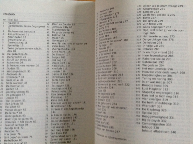OverzichtEen palet korte schetsen. Soms helder en duidelijk, dan weer onverwacht gecombineerd. Soms korte zinnen, maar ook lange zinnen schuwt de auteur niet.