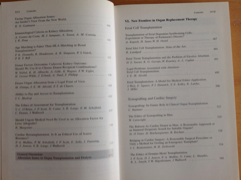 OverzichtLeading medical ethicists, theologists, lawyers, transplant surgeons and physicians discuss 5 major ethical topics concerning the transplantation of human organs.