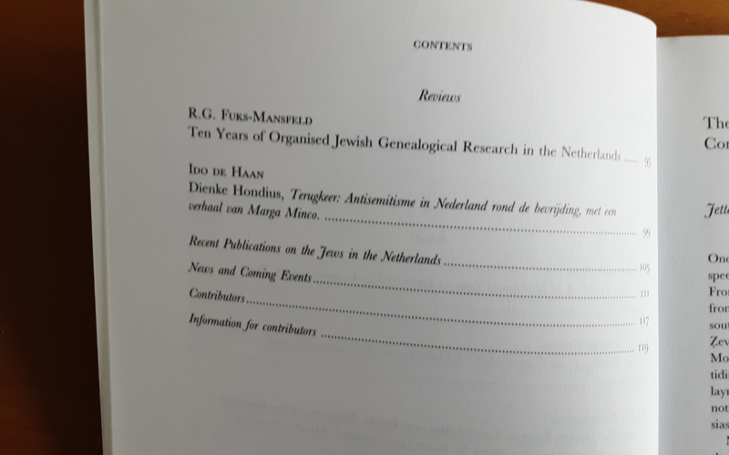 OverzichtJournal of the History , Culture and Heritage of the Jews in the Netherlands.