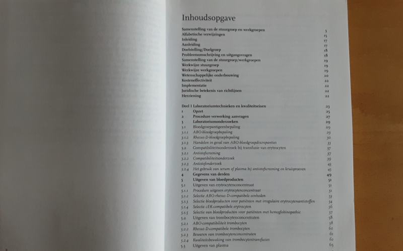 - een 4-pagina tellende kaart: Samenvatting Richtlijn Bloedtransfusie