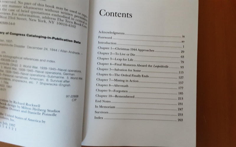 The S.S. Leopoldville Disaster December 24, 1944 recounts the incident through the stories of the survivors. It also tells the emotional stories of the families and loved ones back home through the letters sent to and from those killed. Some of the most emotional and poignant letters are reproduced in the book.