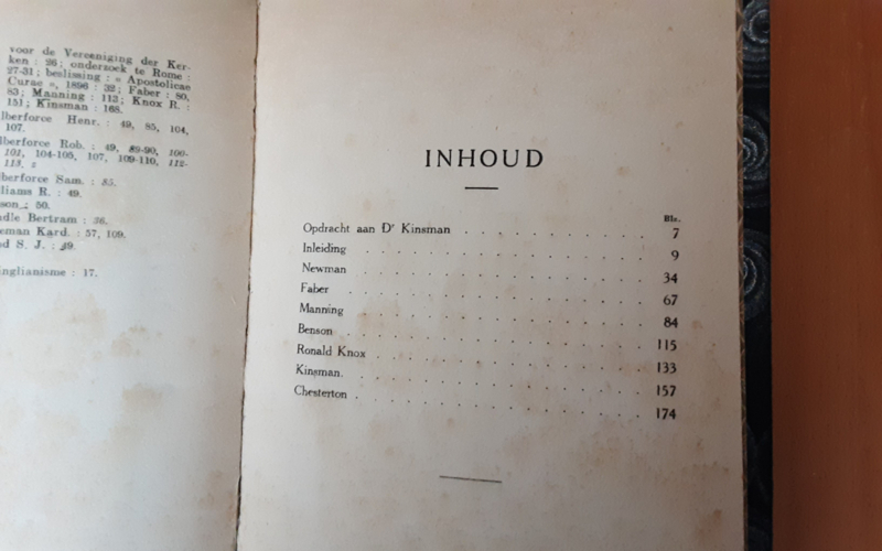OverzichtAnglicaansche Bekeerlingen: Newman - Faber - Manning - Benson - Knox - Kinsman - Chesterton.