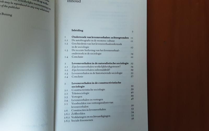 In de sociologie kwam het gebruik van levensverhalen voort uit de wens levensechte data over individuen te verwerven. Die 'oorspronkelijke' inzet wordt in dit boek bekritiseerd. De mogelijkheden van levensverhaal-onderzoek worden eerst verkend in twee vormen van sociologiebeoefening. Voor naturalistische sociologen, die uit zijn op een realistische beschrijving van de sociale werkelijkheid, blijkt het levensverhaal geen geschikte methode; voor 'constructivistische' sociologen zijn levensverhalen juist wel geschikt omdat zij inzicht geven in de wijze waarop mensen in hun interpretaties de werkelijkheid construeren.