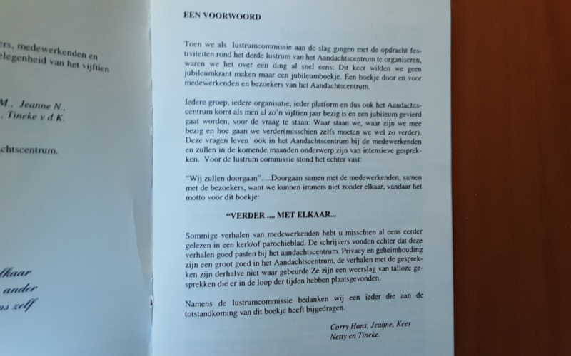 OverzichtDeze bundel gedichten, gedachten, verhalen en vertellingen werd uitgebracht ter gelegenheid van de viering van het derde lustrum op 5, 6 en 7 juni 1998, in een oplage van 1.200 exemplaren.