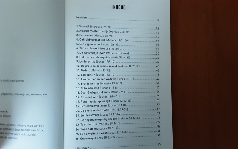 OverzichtDe parabels van Jezus zijn kleurrijke, boeiende miniaturen. Ze zetten aan tot denken en prikkelen tot tegenspraak. De bedoeling ervan is om lezers de ogen te openen en met een andere blik naar zichzelf en de wereld om hen heen te laten kijken.