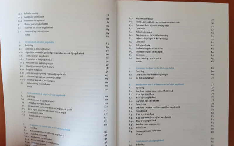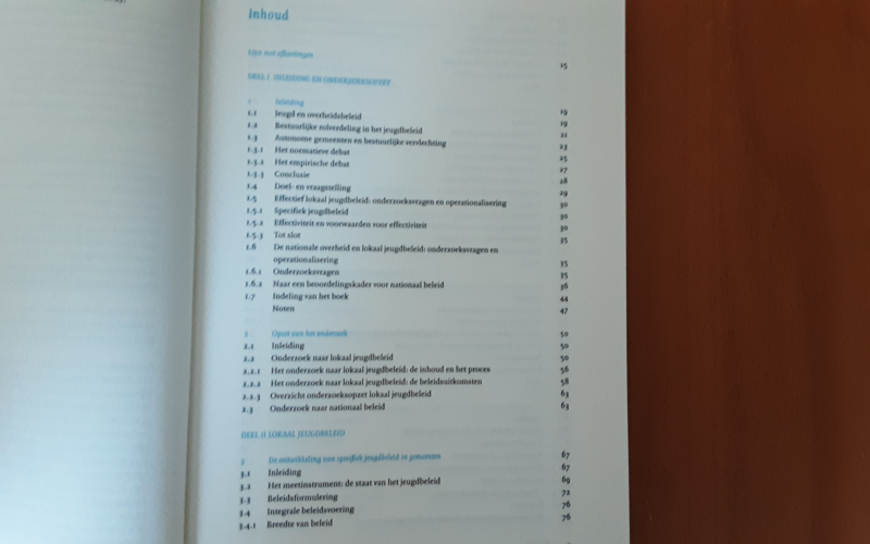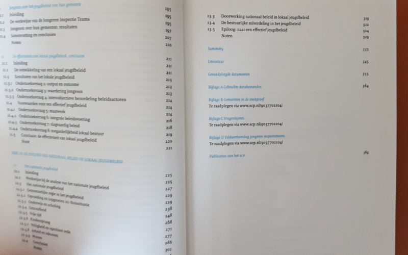 In deze studie staat de spanning tussen lokaal en nationaal jeugdbeleid centraal. Is het jeugdbeleid van gemeenten wel effectief? Hoe zien de resultaten van het lokale jeugdbeleid er dan uit? Is het toegespitst op de lokale situatie en is het integraal, slagvaardig en toegankelijk? Beïnvloedt het rijksbeleid de effectiviteit van het gemeentelijke jeugdbeleid? Zo ja: hoe? Is de bestuurlijke rolverdeling in het jeugdbeleid wel optimaal? Bemoeit het rijk zich te weinig of juist teveel met het lokale jeugdbeleid? Om deze vragen te beantwoorden kijkt dit onderzoek naar het jeugdbeleid van 72 gemeenten in de periode 1998-2001, als ook naar het nationale jeugdbeleid in dezelfde periode.