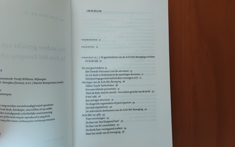 Zo lieten duizenden op 8 mei 1985 op het Haagse Malieveld het andere gezicht van de kerk zien, getuigend van vertrouwen in de toekomst van hun dierbare kerk. Uit deze eerste manifestatie kwam de Acht Mei Beweging voort, die bijna twintig jaar lang een belangrijke rol heeft gespeeld in het wel en wee van de Nederlandse katholieken. Zij bood inspiratie en steun aan hen die naar een open en democratische kerk verlangden. Acht Mei heeft ook al die jaren de leiding van de kerk opgeroepen en uitgedaagd om de verlangens van deze gelovigen ernstig te nemen.