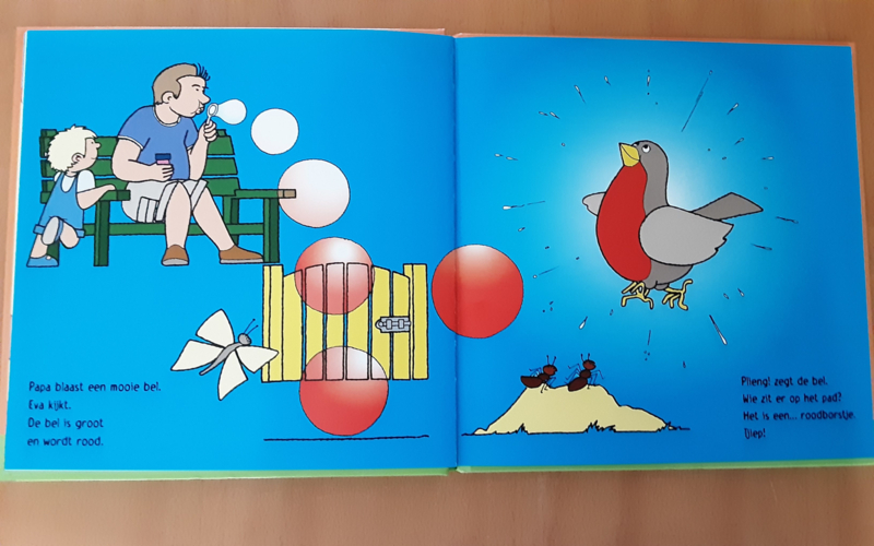 Door goed te kijken, leert Eva zelf bellen blazen. De bellen gaan met de wind een eigen richting op. De bellen vergroten de omgeving uit. Eva wordt zich bewust van de dieren en planten in de tuin. Ook de mieren ontdekken de bellen en worden enthousiast.