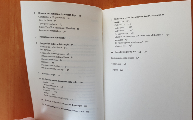 In De Byzantijnse geschiedenis in een notendop wordt duidelijk dat een groot deel van de bevolking geletterd was en enkele keizers befaamde geleerden waren. De kunst nam een zeer hoge vlucht en de literatuur werd naarstig beoefend.