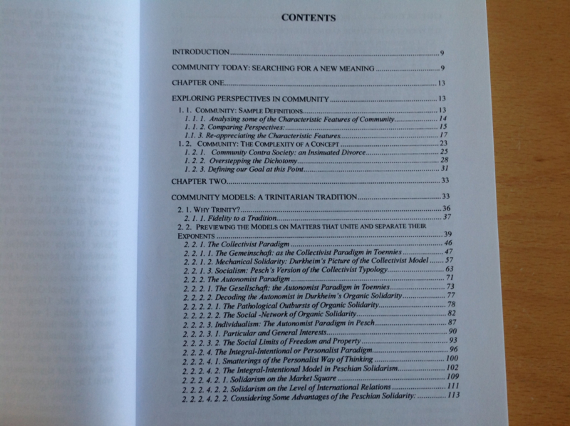 This book provides a new way of understanding community. It draws from previous definitions and interpretations of the concept to come to one that takes into account the growing pluralism in the socio-political strata of the world of today. The author's extensive analysis of three approaches to community by Ferdinand Toennies, Emile Durkheim and Heinrich Pesch gives the study a solid sociological foundation. His inclusion of authors like Martin Buber, Jacques Maritain, Emmanuel Mounier, John MacMurray, Louis Janssens and Stanley Hauerwas in the study underlines not only the philosophical but also the theological stronghold of the book. The discussion on how the notion of God as Trinity can affect the meaning of community adds to its theological relevance. By introducing personalism and the Trinitarian notion of God into how he thinks community should be understood today, the author challenges his readers, individually and collectively, to review the traditional attitudes to diversity and differences in society. A generally thematic study, the work also reveals the author's commitment to a historical-critical approach. Taken seriously the vision of community espoused in the book can lead to answering questions on conflicts in the world today.