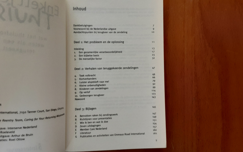 In dit boek komt een groot aantal zendelingen aan het woord. Zij vertellen hoe het is om een enkeltje thuis te nemen. Vaak gaat dit gepaard met teleurstellingen. Het thuisfront blijkt doorgaans niet veel weet te hebben van de problemen waar een terugkerende zendeling doorheen gaat.