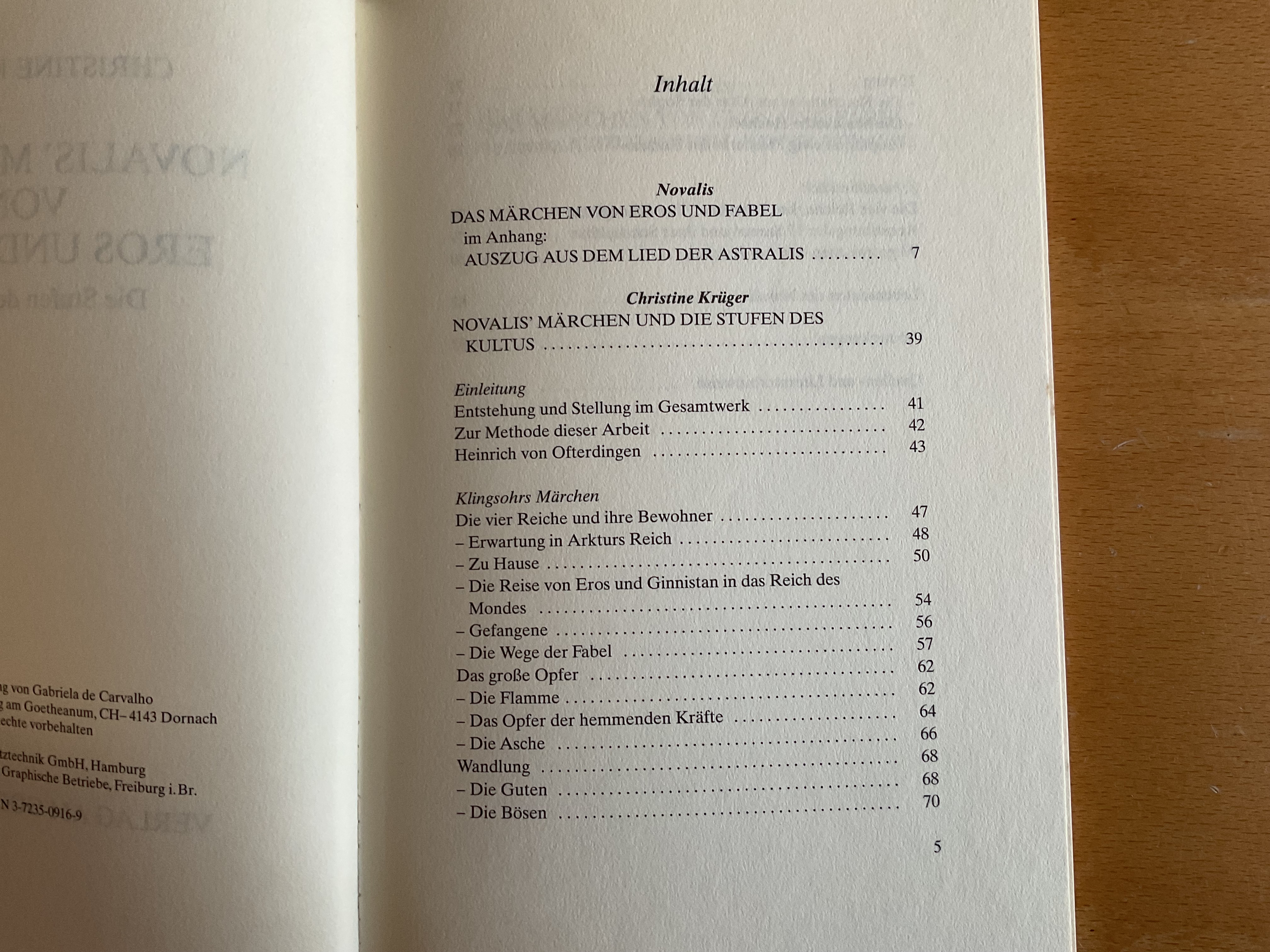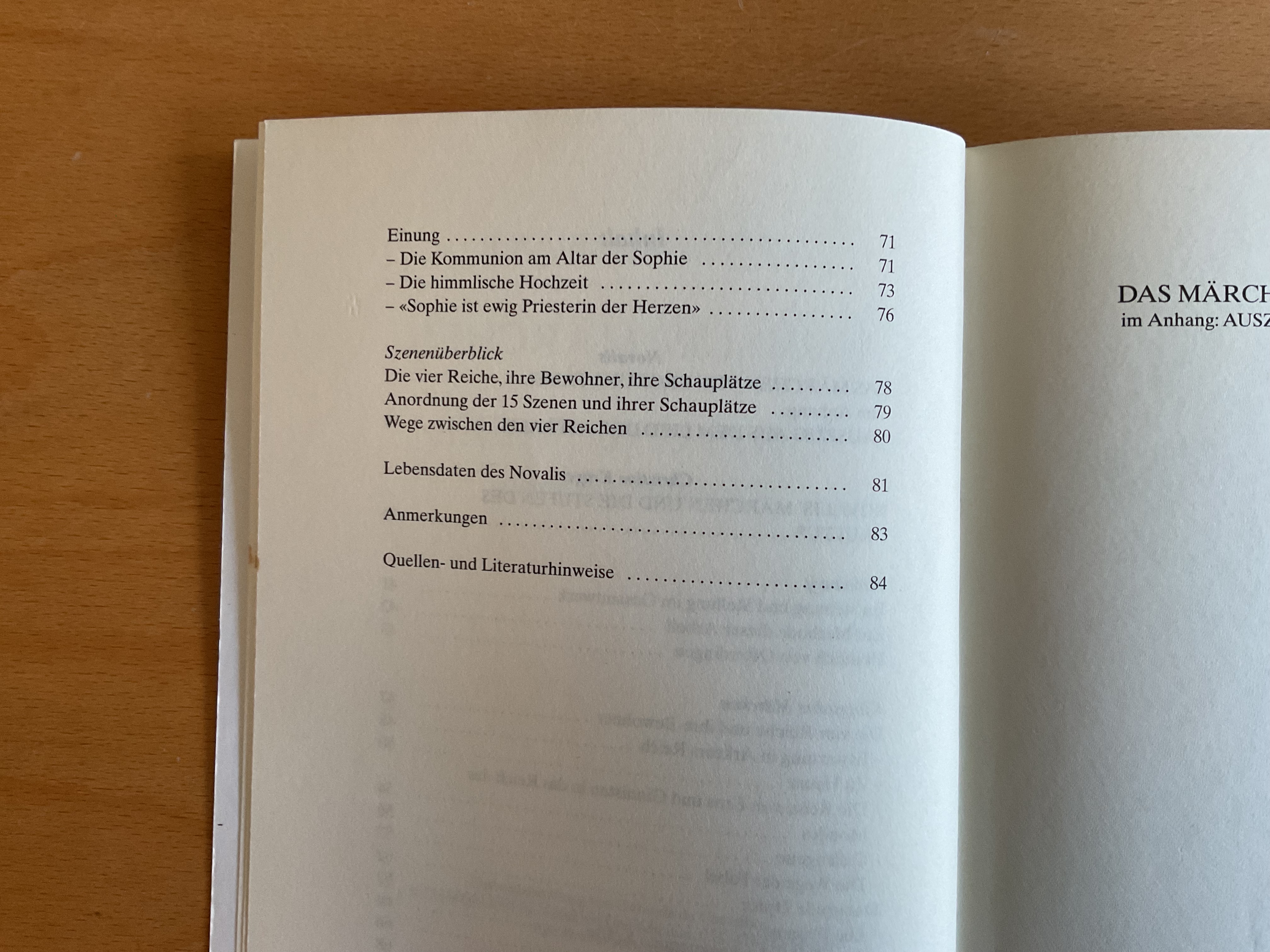 Dem vollständigen Abdruck des rätselvollen Märchens, das der Dichter Klingsohr im neunten Kapitel des Heinrich von Ofterdingen erzählt, folgt nach seiner Einordnung in Biographie und Gesamtwerk des Dichters eine Interpretation der fünfzehn Szenen, in denen die handelnden Personen auf vier verschiedenen Daseinsebenen Opfer bringen und Wandlungen durchmachen.